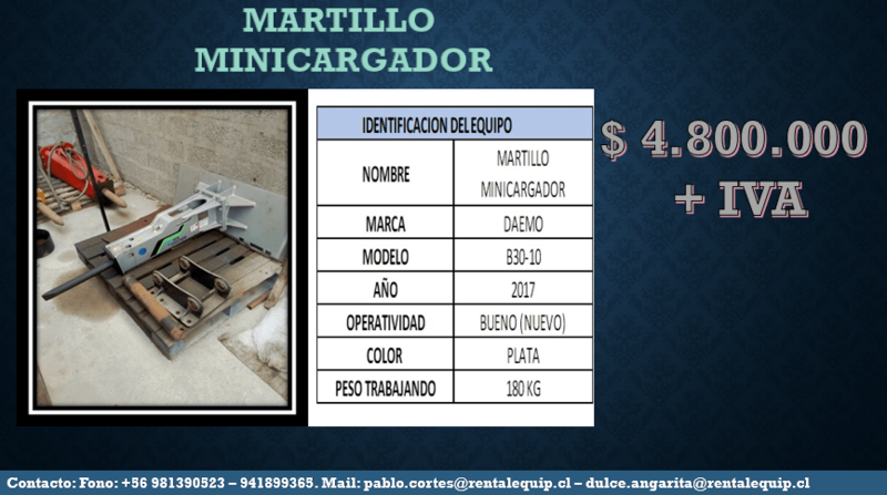 Somos una empresa de Arriendo y venta de equipos para minería , construcción y otros. Contamos con convenios Internacionales para importar, vender, equipar y distribuir en el mercado nacional, equipos de alta tecnología con los estándares acorde al mercado. Abarcamos la necesidad en parques solares, paneles solares y estibaje/desestibaje de carga de container. Disponibilidad de arrendamiento de nuestros equipos y asociados. Manipuladores telescópicos. Retroexcavadoras con y sin servicio, con operación y sin operación. Servicio de Transporte de Equipos y maquinarias a faena y entre ciudades. Nuestra empresa cuenta con la logística, gestión y equipos capaces de satisfacer todas las necesidades de transporte. Estamos en condiciones de ingresar a faenas mineras, cumpliendo con los estándares exigidos.